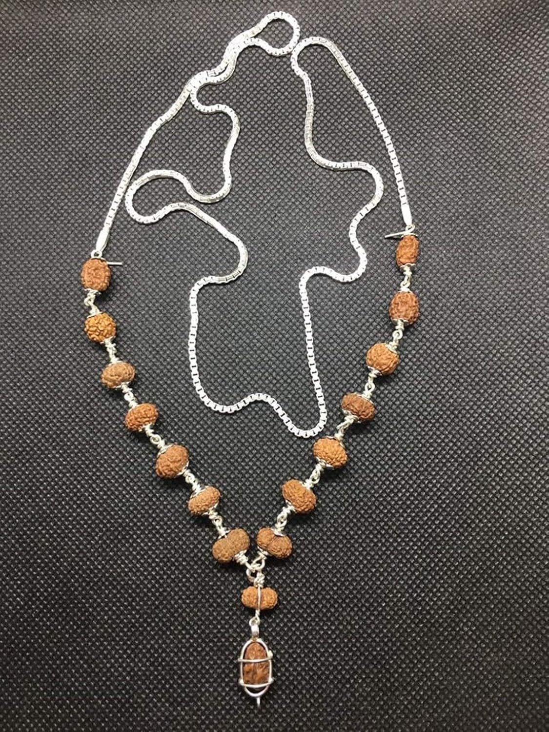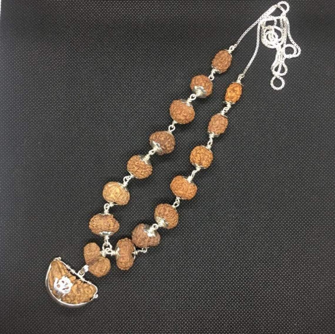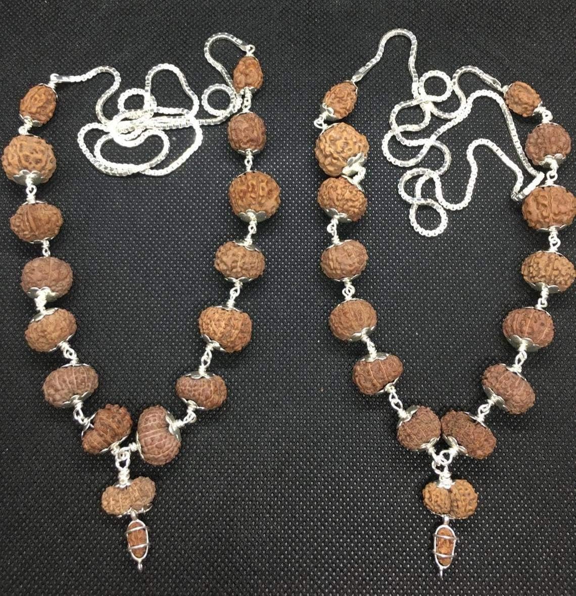 Siddha Mala Rudraksha in Silver (1-14 Mukhi, Ganesh, Gaurishankar) Indonesian Origin Medium Size Beads Lab Certified