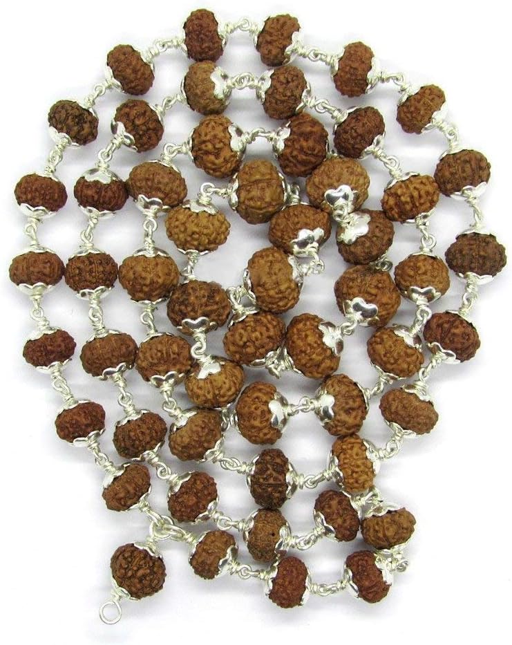 4 Mukhi Indonesian Rudraksha Mala 54 Beads in Silver (9mm-11mm) Lab Certified