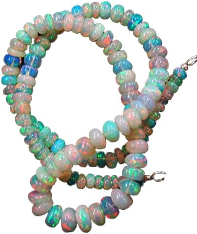 LOVEKUSH LKBEADS Natural gem Stone Ethiopian Opal Big Smooth Beads Complete Necklace Rainbow fire Flashing 18 inches 4 to 9 mm Code-HIGH-60573