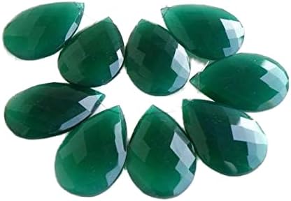 LOVEKUSH LKBEADS Green Onyx Gemstone Briolette Faceted Pear Tear Drop Large Focal Pendant 24mm 5 Beads Matched Code-HIGH-58294