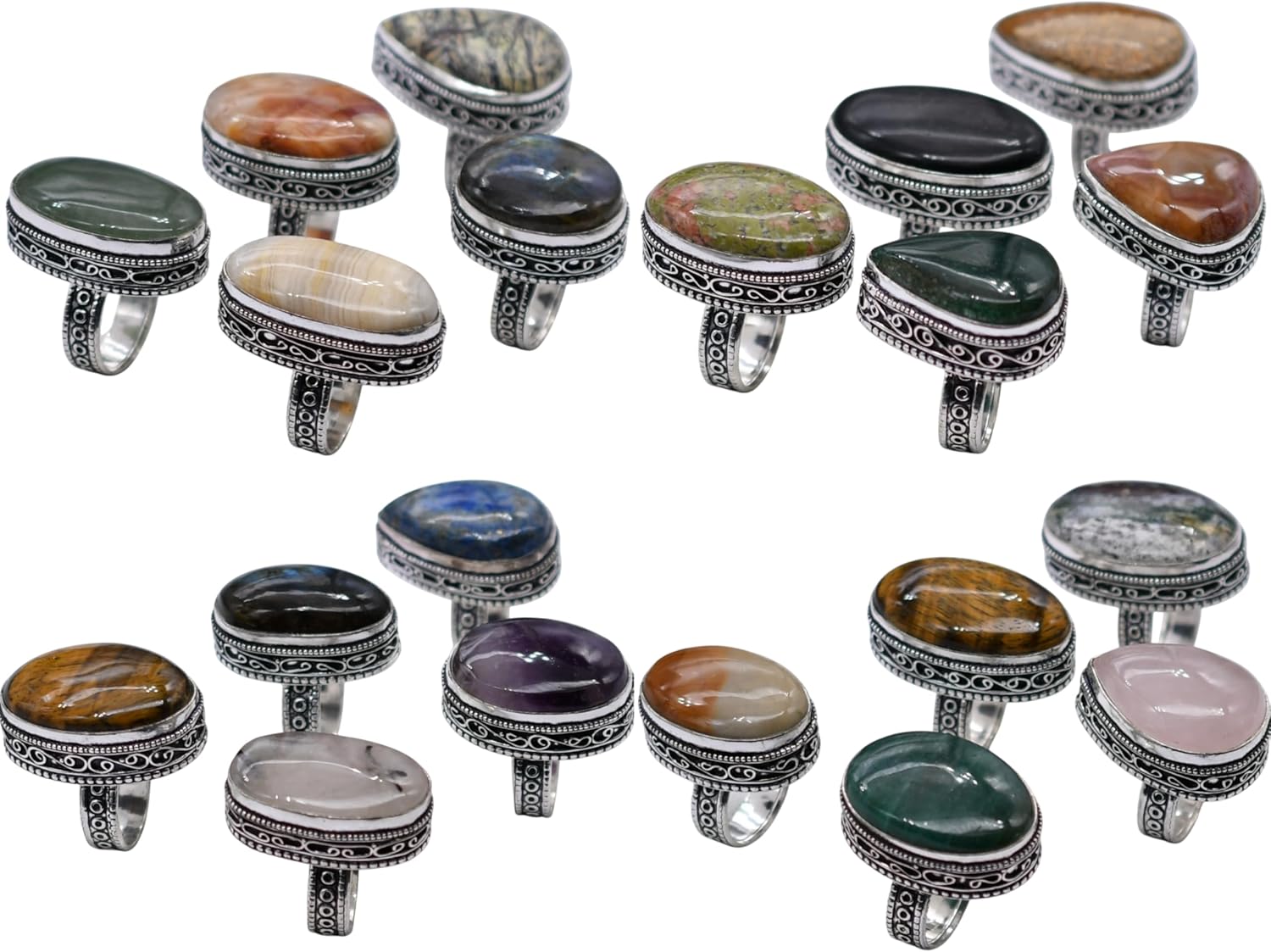 100 PCS Mix Gemstone Ethnic Handmade Ring Mix Lot US Size-5-9 R 9146 R 9146
