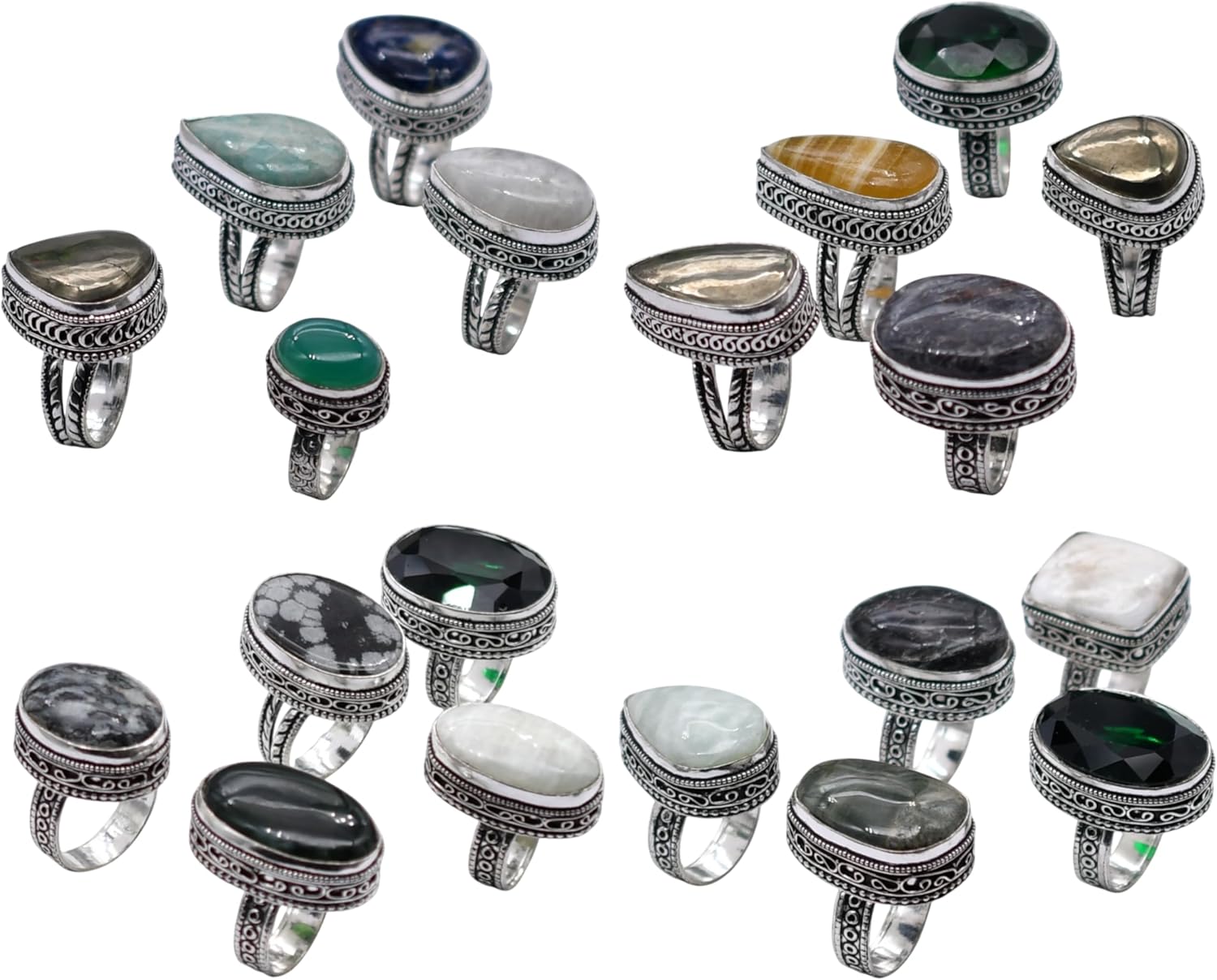 25 PCS Mix Gemstone Ethnic Handmade Ring Mix Lot US Size-5-9 R 9126 R 9126
