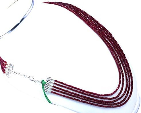 25" natural ruby precious faceted rondelle beads, 2-5mm 5 strand necklace