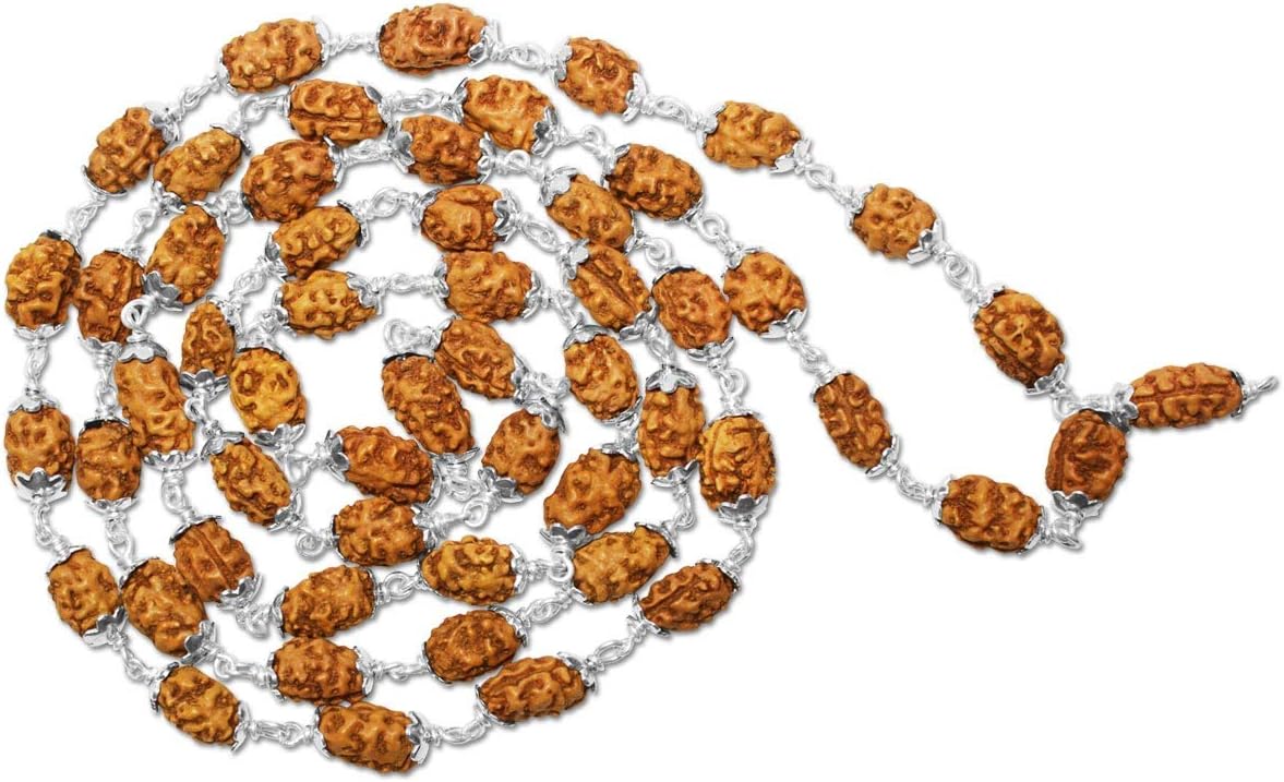 2 Mukhi Indonesian Rudraksha Mala 54 Beads in Silver (7mm-9mm) Lab Certified
