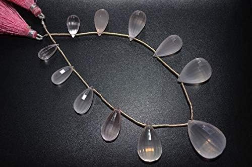 11 Pcs-Natural Brazil Rosequartz Step Cut Micro Faceted Plump Teardrops Shape Briolette Beads 6x14mm Code-HIGH-60022