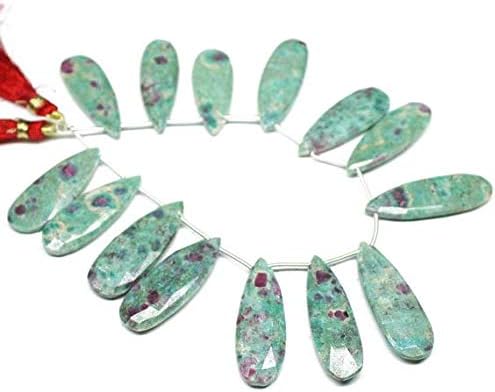 Natural Ruby Zoisite Faceted Briolette Pear Drop Gemstone Craft Loose Beads Starnd 8 Inch Long 33mm 36mm Code-HIGH-1022