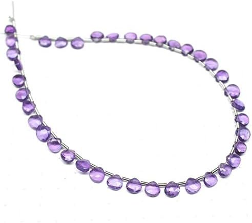 Natural Purple Amethyst Small Faceted Heart Drop Briolette Gemstone Craft Loose Beads 8 Inch Long 4mm 5mm Code-HIGH-1019