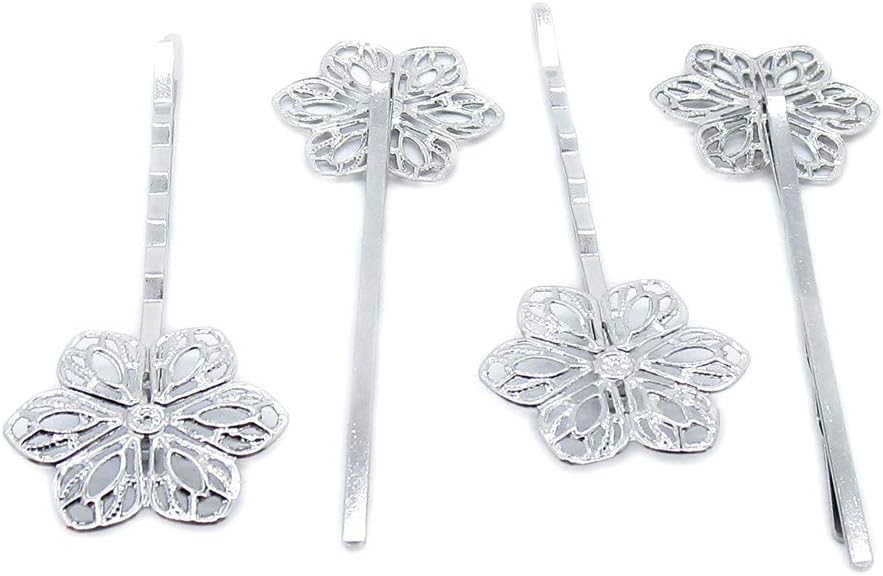 280 Pieces Antique Silver Tone Jewelry Charms Suppliers Arts Crafts Making Beading Findings Crafting PP2D2S Flower Hairpin Hairclip Hair Clip