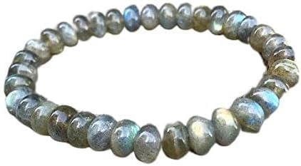 Grounding 5x8mm Stretchable Gray Labradorite Bracelet Rondelle, Smooth 7" for mens, womens, gf, bf & Adult.