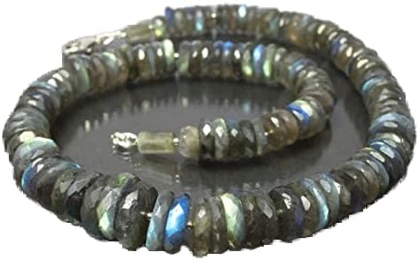 925 sterling Silver Anxiety Relief Calming 11-15mm stacking Gray Labradorite Necklace Rondelle, Faceted 17" for mens, womens.