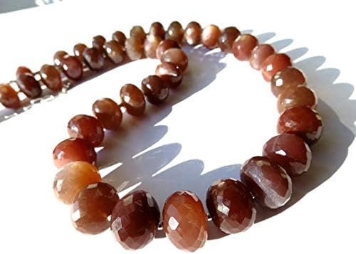 925 sterling Silver Dainty Slave Loose Silver Helling Balls 12mm stacking Multi Genuine moonstone Necklace Rondelle, Faceted 17" for mens, womens.