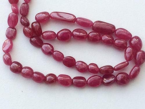 Ruby Glass Filled Plain Oval Tumbles, Ruby Necklace, Ruby Jewelry, Ruby Beads, Genuine Ruby Necklace, 7-15mm, 9 Inch Strand, 27 Piec