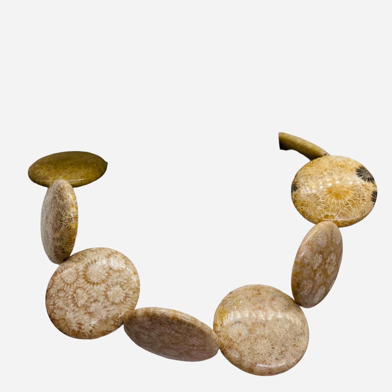 Fossilized Coral 35mm Coin Pendant Bead Strand 109156 for Jewelry Making