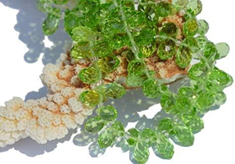 faceted crystal glass green briolette, 11.5x 6 mm wire wrapped briolette, jewelry supplies 3.5" strand.