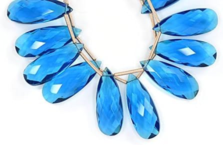 10x25mm 3 matched pairs deep swiss blue quartz microfaceted large pear briolette