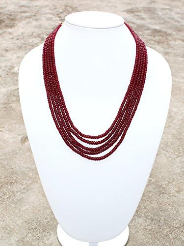 19.8" Long 3-5mm Natural Ruby Smooth Rondelle Beads 5 Strand Necklace